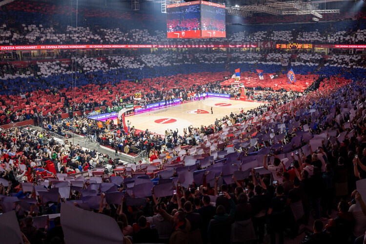 Болельщики сербской «Црвены Звезды» исполнили песню «Катюша» перед матчем регулярного чемпионата Евролиги с литовским клубом «Жальгирис».