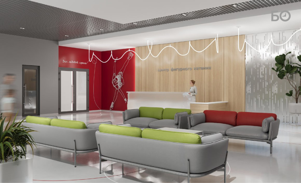 Условно его можно поделить на две зоны: в первой разместится ледовая площадка, во второй будет восемь раздевалок, тренерские комнаты, буфет, залы для хореографии, кардио и силовых тренировок.