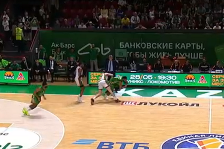 Речь об эпизоде за семь секунд до финальной сирены, когда форвард УНИКСа Дарран Хиллиард принял мяч, немного «потоптался» на месте и сделал передачу при счёте 95:90. Следом два очка в быстром отрыве набрал Маркос Найт и установил финальный счёт.