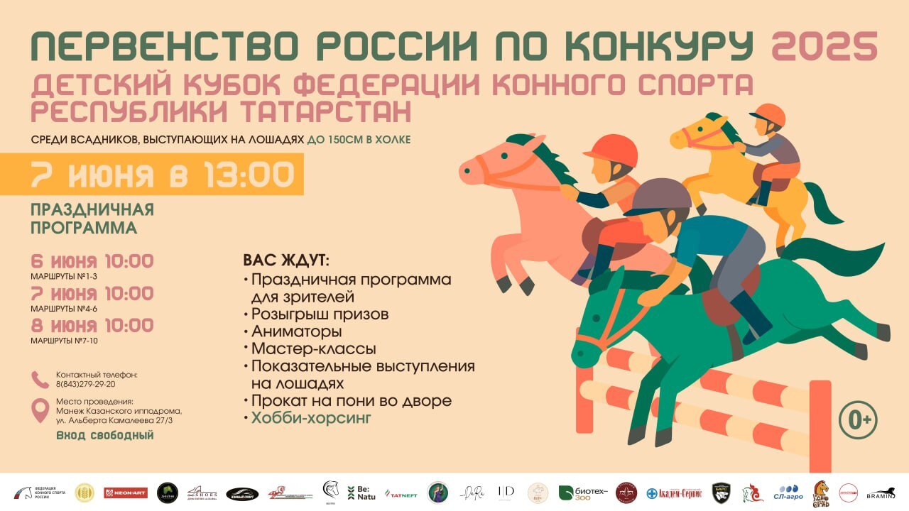 С 6 по 8 июня в Казани в манеже международного конноспортивного комплекса «Казань» (пр-кт Альберта Камалеева, 27а/3) впервые в Татарстане состоится первенство России по конкуру среди всадников на лошадях до 150 см — одно из ключевых детских соревнований в календарном плане федерации конного спорта России.