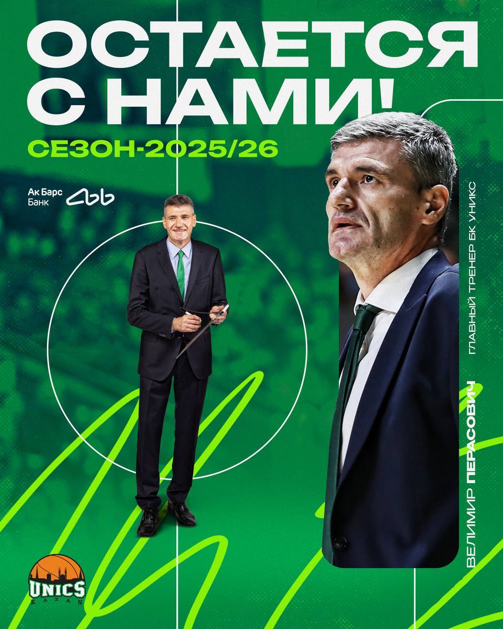 Казанский УНИКС сообщил о продлении контракта с главным тренером Велимиром Перасовичем.