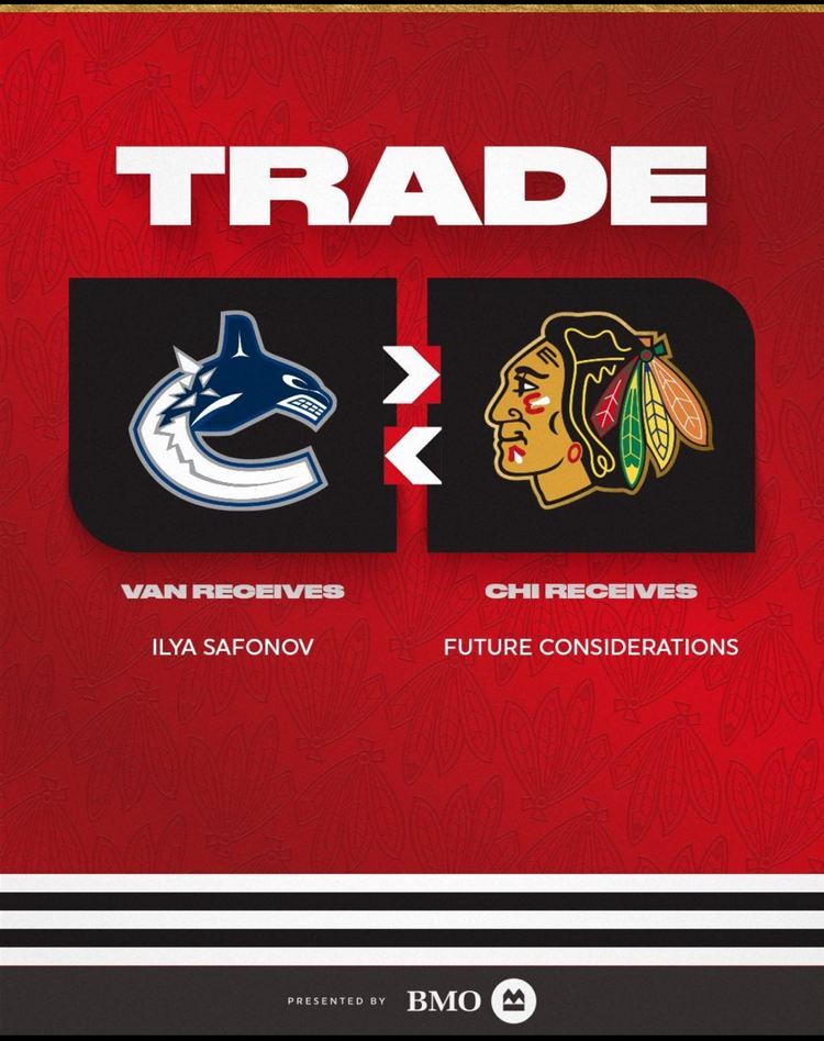 «Чикаго» объявил об обмене прав на нападающего «Ак Барса» Ильи Сафонова в «Ванкувер» на «будущее вознаграждение».