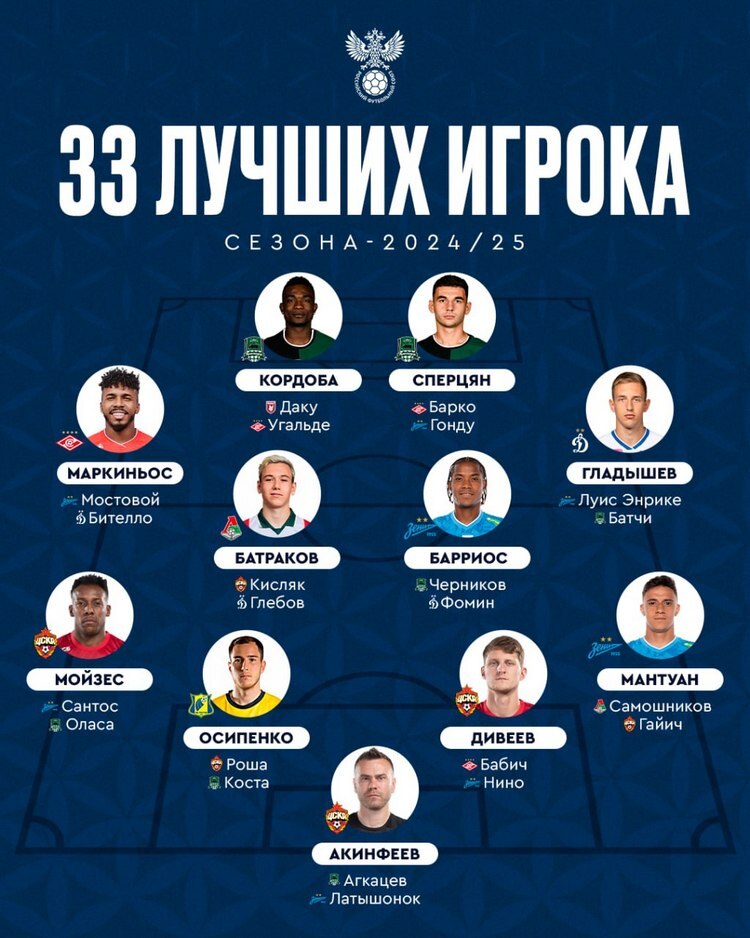 Албанец был выбран, как один из лучших нападающих чемпионата страны. Даку уступил первое место форварду «Краснодара» Джону Кордобе, несмотря на то что забил больше голов. Футболист казанской команды сумел отличиться 15 раз, а на счету колумбийца 12 голов. Отметим, что Кродоба еще и признан лучшим игроком сезона по версии РФС. Напомним, что Джон вместе «Краснодаром» стал впервые чемпионом России по итогам прошлого сезона.Полный список 33–х лучших игроков чемпионата России выглядит так: