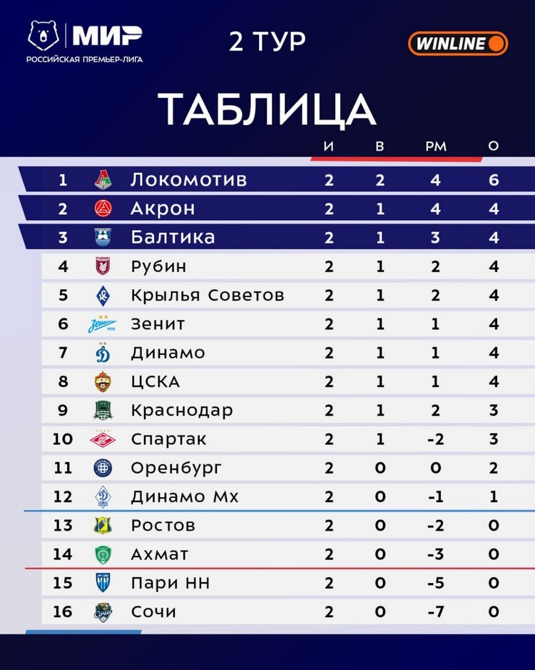 В турнирной таблице чемпионата лидирует «Локомотив» с 6 очками. «Рубин» на четвёртой строчке.