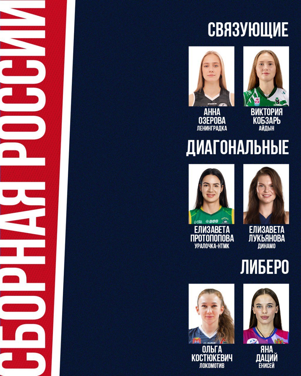 Доигровщицы: Светлана Гатина («Зерен», Турция), Полина Шеманова («Нилюфер», Турция), Валерия Шевчук («Динамо» М), Анастасия Капралова («Локомотив»).