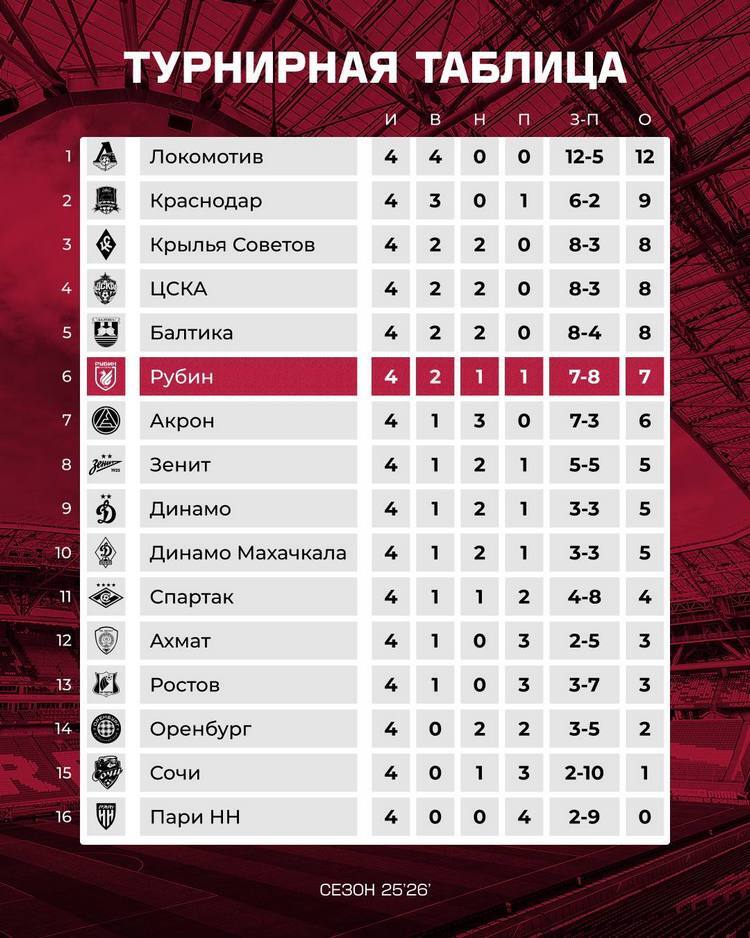 В гонке лучших бомбардиров лидирует Батраков. На его счету шесть голов. У Вадима Ракова из «Крыльев» и Даку из «Рубина» по – 4 мяча.