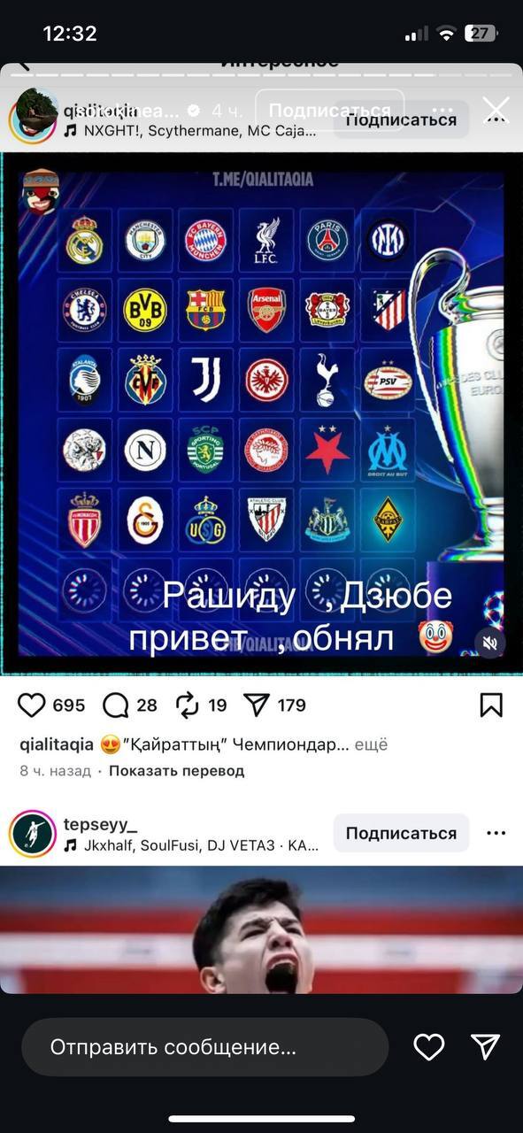 Сорокин опубликовал несколько фото. С картинкой клубов-участников на групповом этапе Лиги чемпионов Сорокин написал: «Рашиду, Дзюбе привет, обнял», добавив смайлик с клоуном.