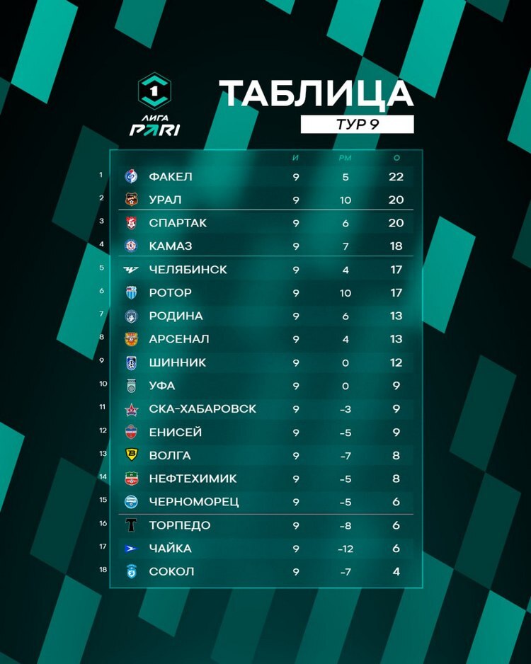 КАМАЗ выпал из тройки, «Факел» – лидер, новички продолжают удивлять. Обзор 9-го тура первенства Первой лиги