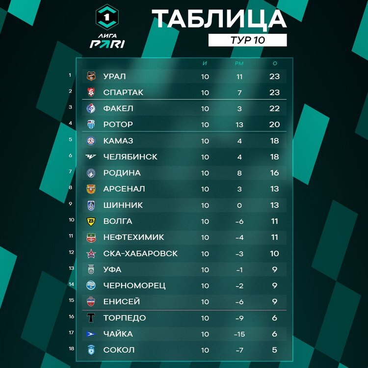 Благодаря этим трём очкам «Спартак» обошёл «Факел» и закрепился на второй строчке. «Урал» костромичей опережает только лишь по дополнительным показателям. «Арсеналу» же нужно как-то выправлять ситуацию, ведь он обладает хорошим подбором исполнителей, которые имеют опыт выступления в РПЛ, и девятое место в турнирной таблице – это явно не то, на что рассчитывали руководители клуба.