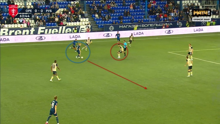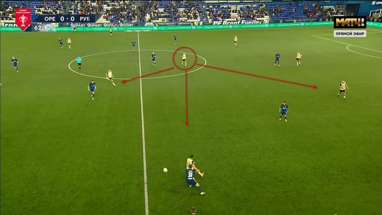 Вот по эпизоду Швец оказался в позиции опорного полузащитника, где ему и предстоит играть, скорее всего. Он выбрал хорошее расположение, если бы мяч оказался у Антона, то у него бы открывалось сразу три продолжения атаки: он мог бы отдать на ход Александеру Юкичу, перевести его на Руслана Безрукова или вернуть защитникам, например Константину Нижегородову. На все это игрок способен, поскольку пас у него никуда не делся.