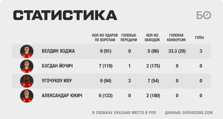 Отражает это и статистика, например, по данным Sofascore, полузащитника нет даже в первой сотне по обводкам, по ударам он ее почти замыкает. Это же касается и Йочича, у него схожие с партнером показатели. Но в случае с Богданом стоит заметить, что он другого плана футболист и больше славится своими оборонительными действиями, а не атакующими.