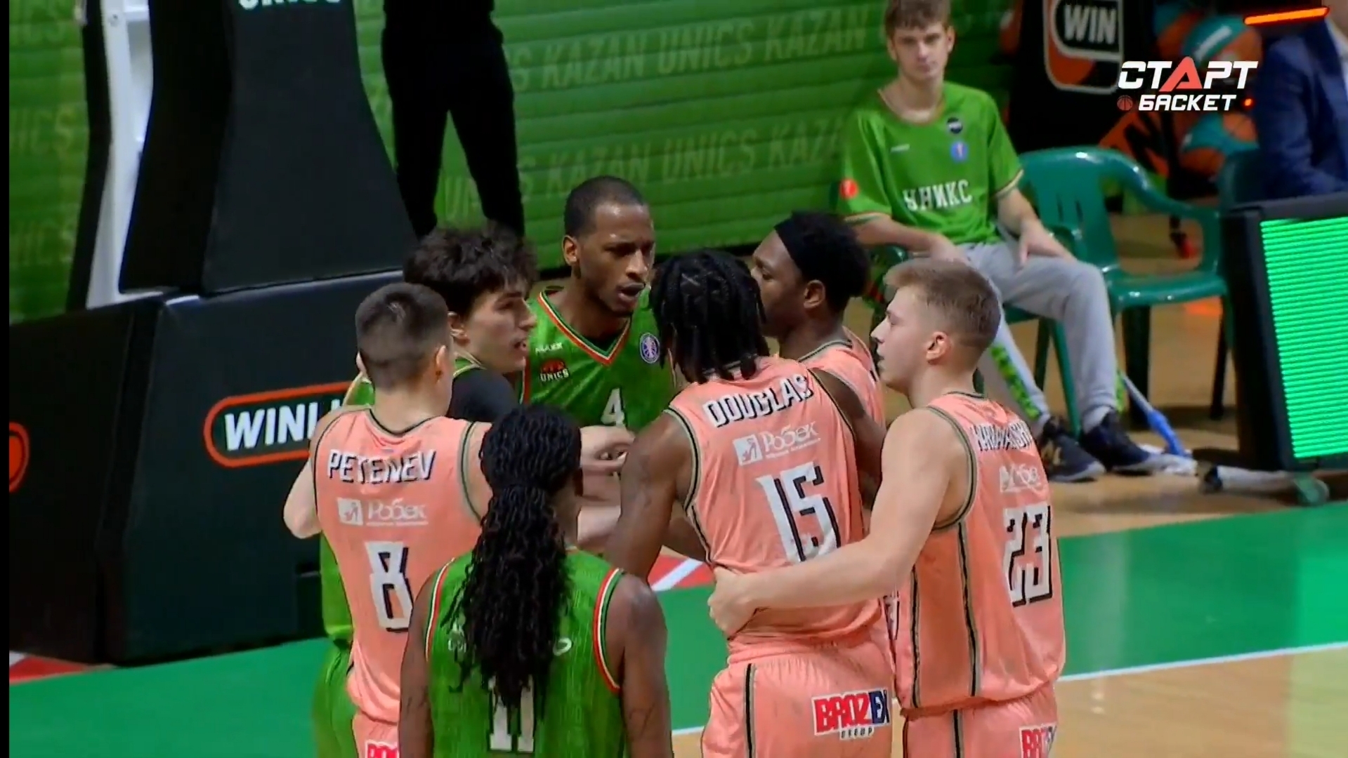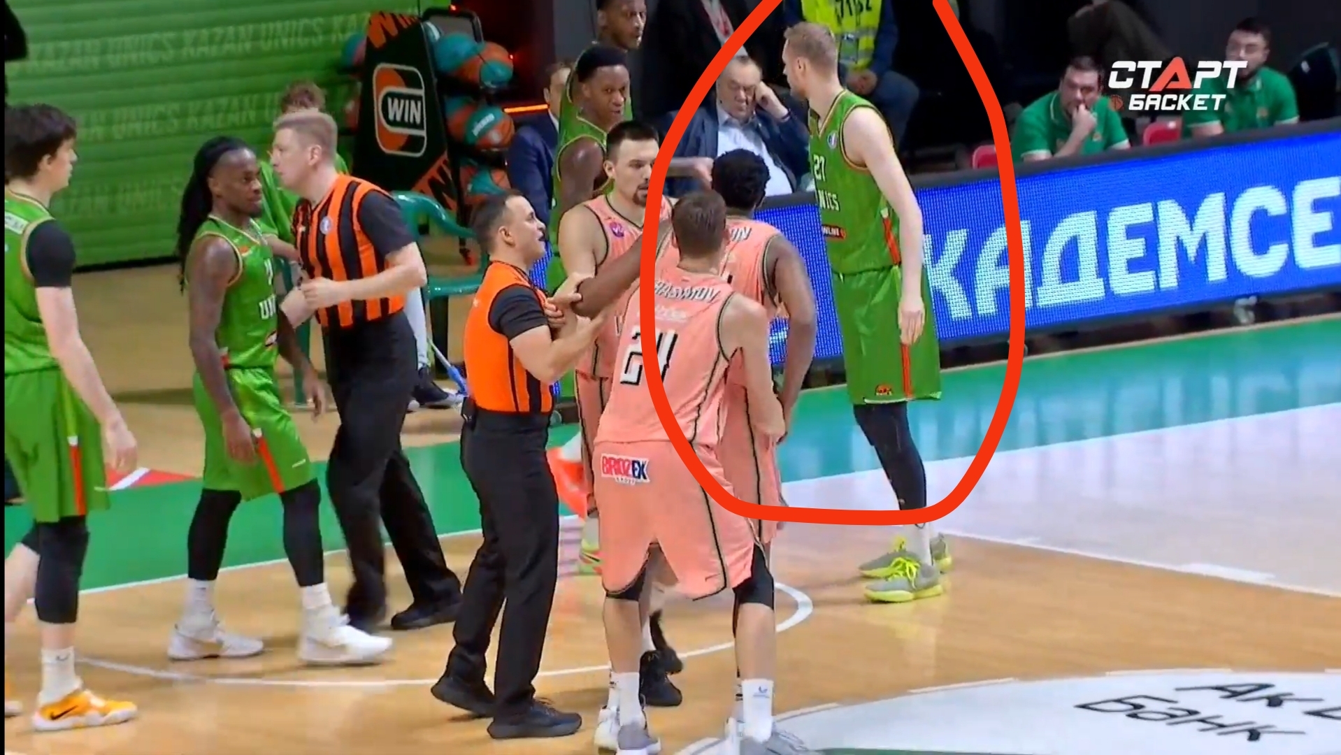Игрок гостей Джавонте Даглас вступил в стычку с центровым УНИКСа Маркусом Бингэмом. А затем на Бингэма накинулся и Тайрэлл Нельсон.