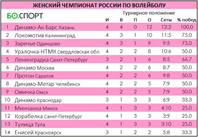 Сегодня матчем в Красноярске завершился 4-й тур в открытом женском чемпионате России по волейболу.