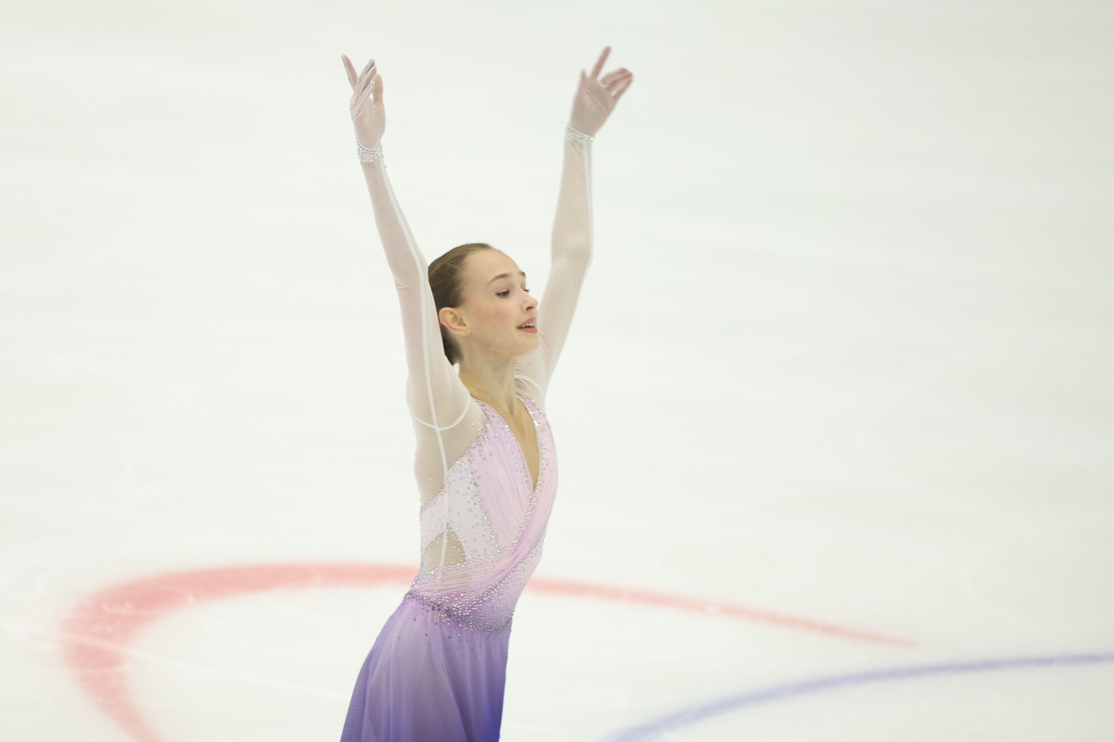 Первое место заняла Дина Хуснутдинова. Она единственная из участниц исполнила тройной аксель.
