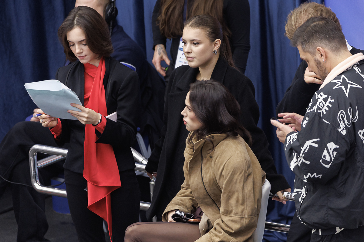 Оба соревновательных дня во Дворце спорта можно заметить олимпийскую чемпионку Алину Загитову и серебряного призёра Игр Евгению Медведеву. На фото ниже они в компании ещё одной заметной российской фигуристки Анны Щербаковой, которая выиграла Олимпиаду в Пекине.