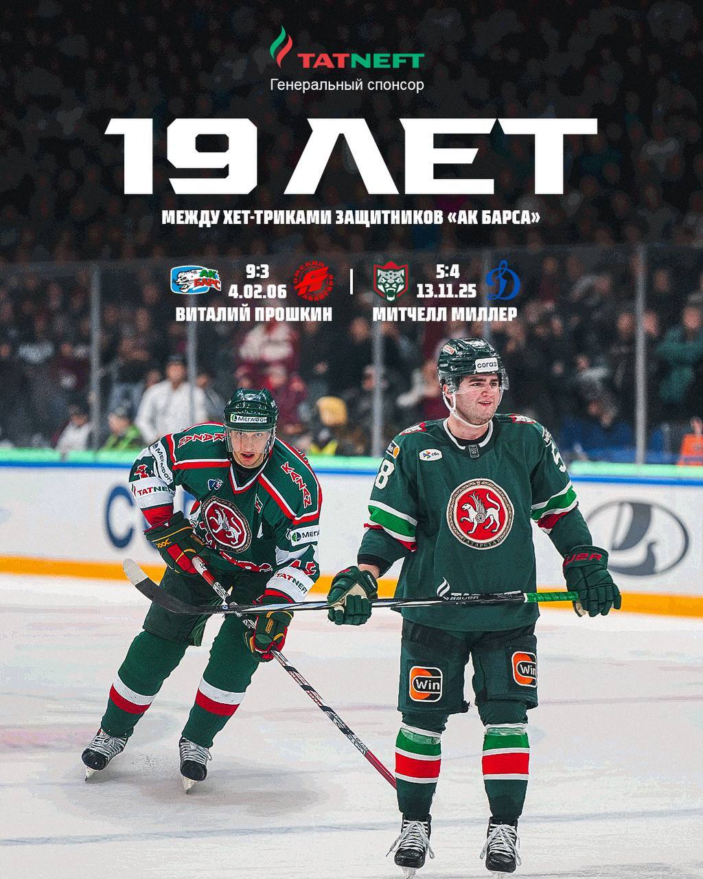 До 13 ноября 2025 года Виталий Прошкин был последним защитником «Ак Барса», которому удавалось оформить хет-трик.