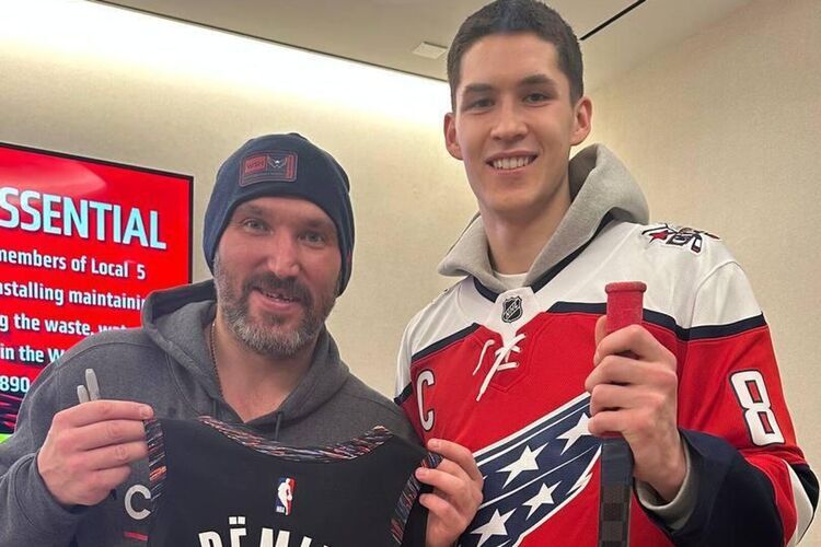 Баскетболист сфотографировался в свитере под восьмым номером, на котором также был изображен автограф Овечкина. Накануне Егор посетил матч «Вашингтона», после которого встретился с легендарным хоккеистом.