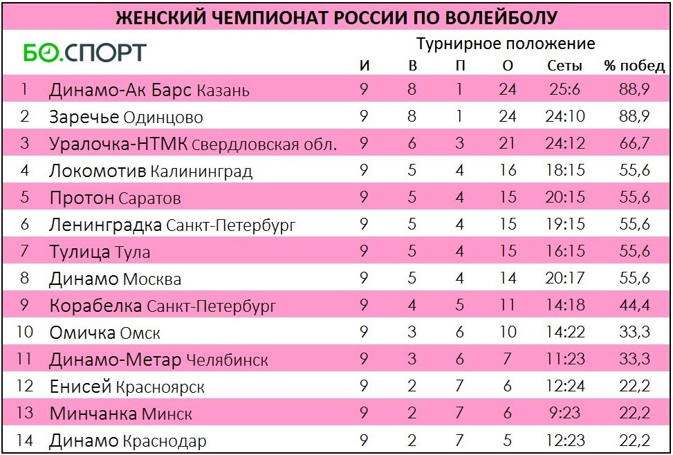 Динамо-Ак Барс – Омичка – 3:0 (25:14, 25:20, 25:13)
