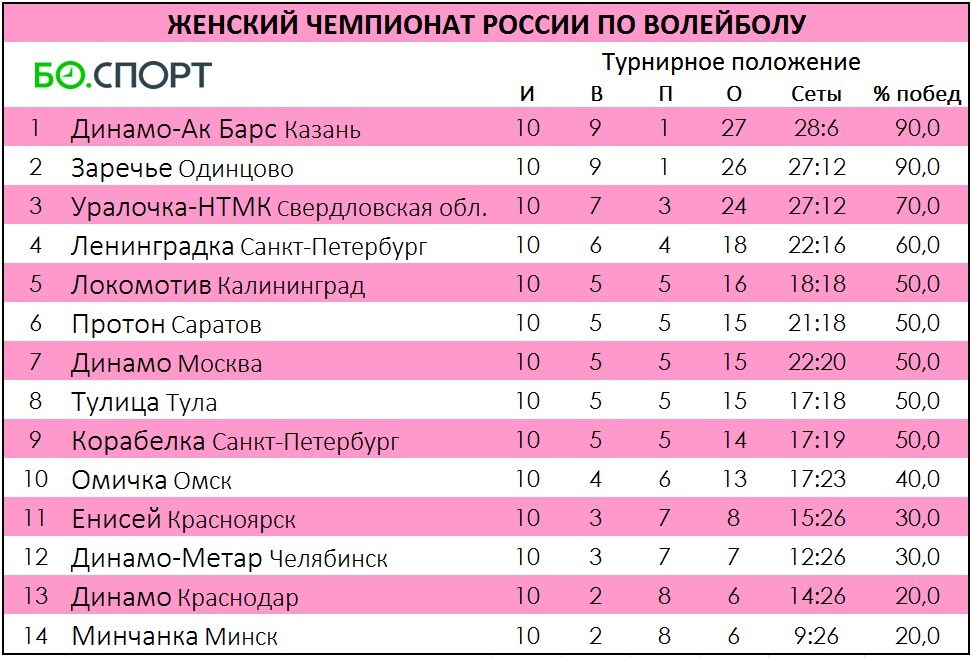 Двумя матчами завершился 10-й тур открытого женского чемпионата России по волейболу.