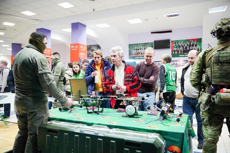 Надо отдать должное УНИКСу. Несмотря на то, что СВО продолжается уже четвёртый год, ранее ни один из татарстанских клубов не организовывал подобные выставки. Да, были какие-то частные акции: ветеранов приглашали на матчи, тренировки, делали им подарки. Но чтобы вот так централизованно – нет. Благодаря акции на баскетбол пришли статусные гости – заместитель министра труда РТ, один из героев экипажа танка «Алёша» Расим Баксиков, руководитель татарстанского Роспотребнадзора Марина Потяшина и другие.